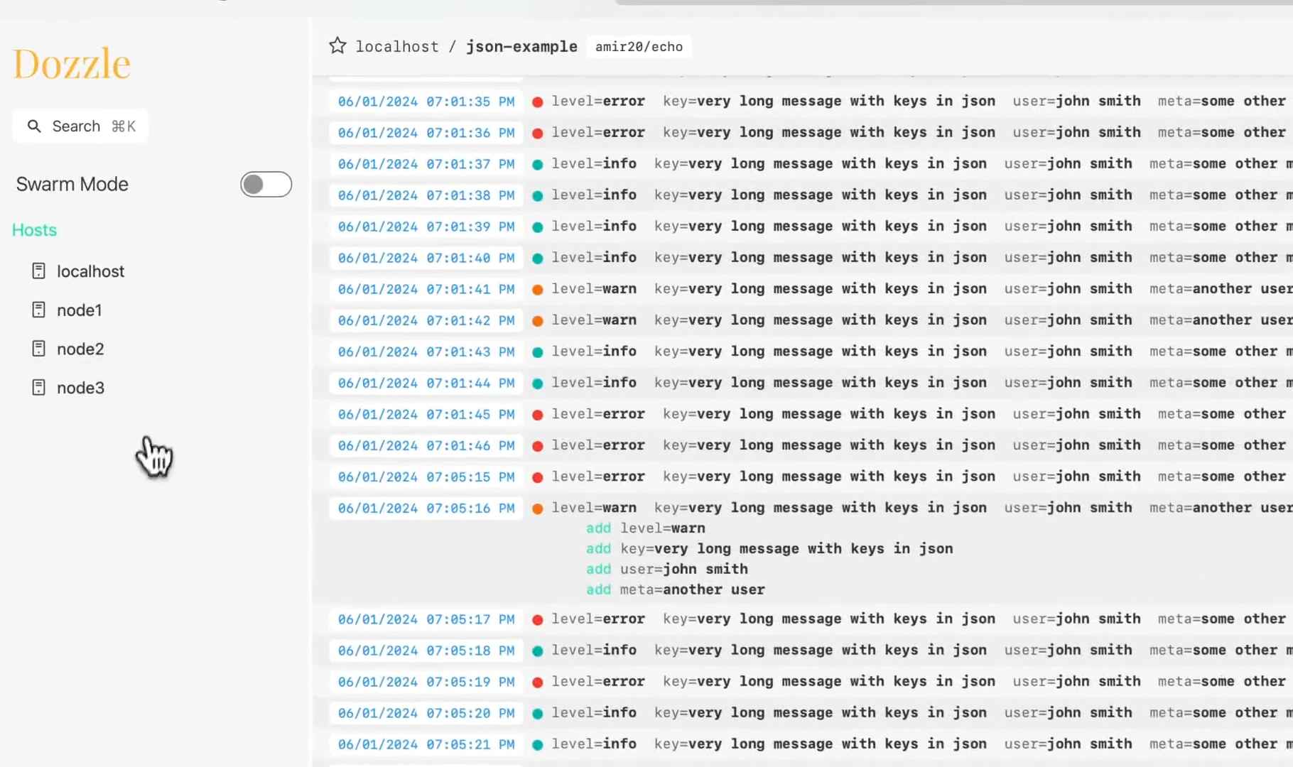 一个极致轻量(7MB)的 Docker 日志实时查看工具,提供精美 Web UI、分屏监控、正则/SQL 搜索,支持 Docker、Swarm、K8s 和多主机监控,适合快速调试和轻量监控场景,不存储日志文件,纯粹用于实时查看。