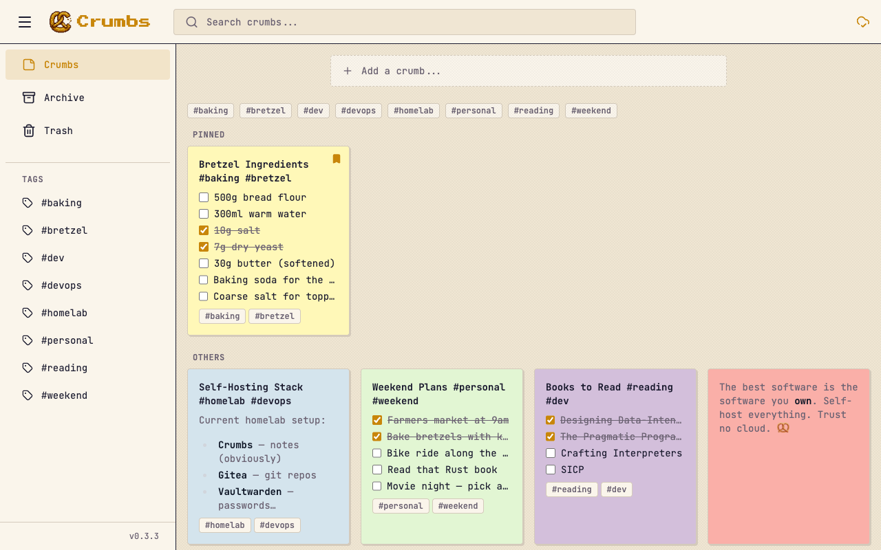 一个可自托管、离线优先的笔记应用。支持 Markdown、支持#标签、全文检索、AI集成(MCP 服务器),移动端PWA应用安装等。